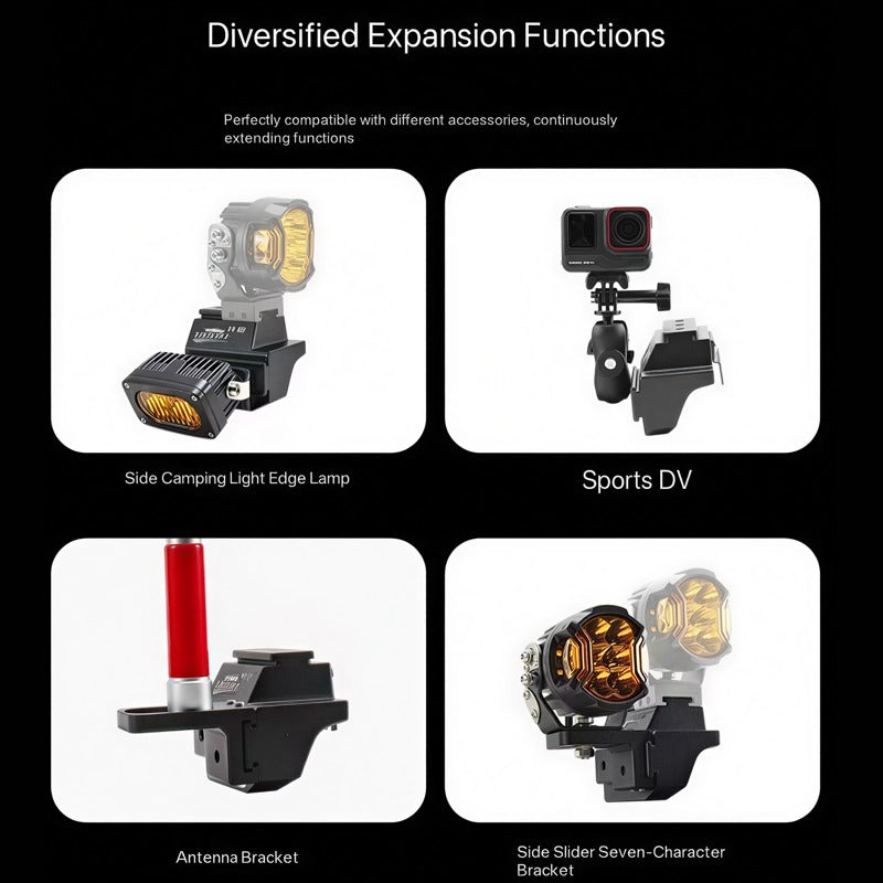 3. The extended design can not only stably mount spotlights of various specifications, but also support outdoor dedicated devices such as action cameras, ideal for outdoor adventures, self-driving travel recording and other diverse scenarios, with excellent practicality.